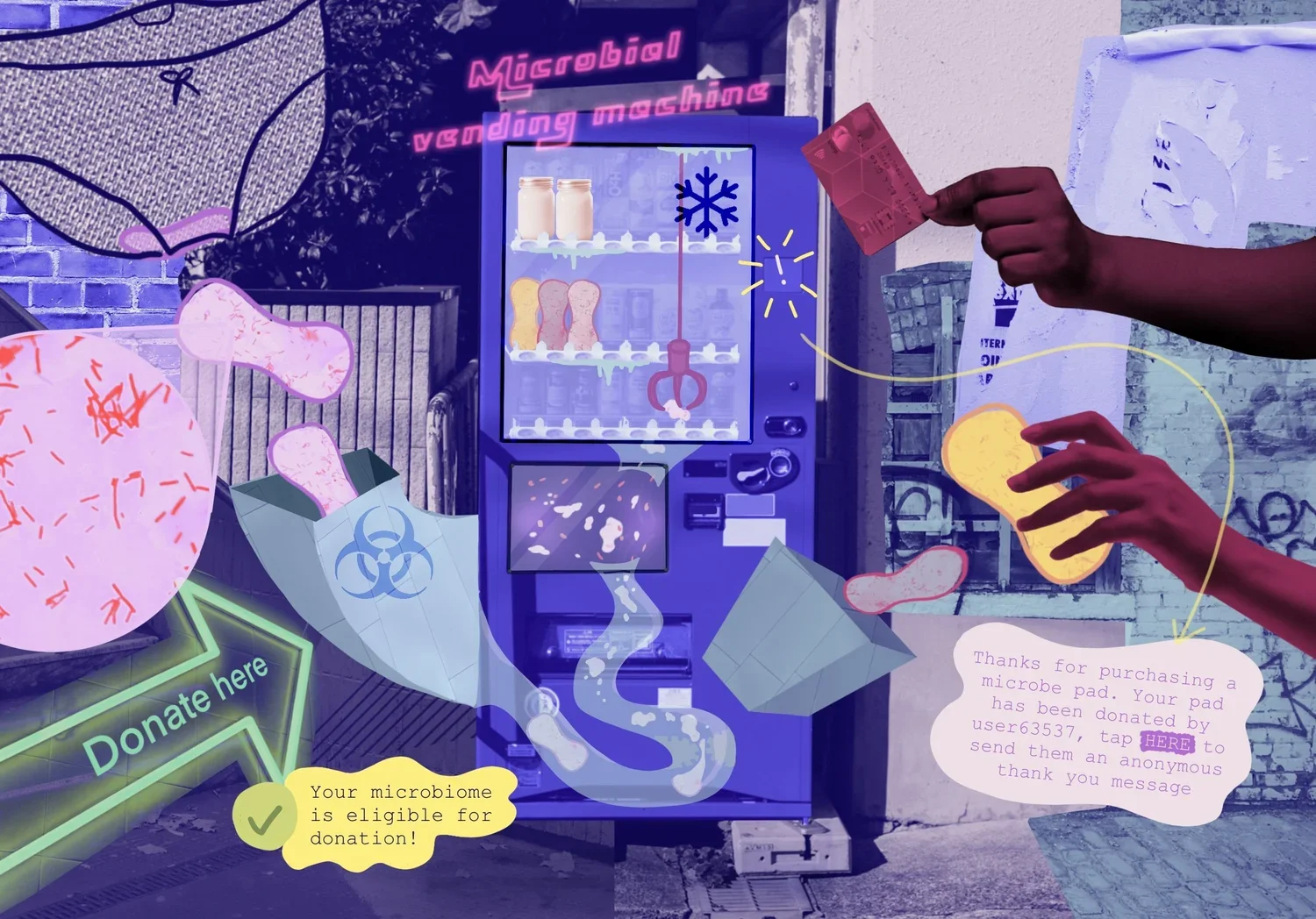 This project explores the human holobiont—viewing the body as an entangled ecosystem of human and nonhuman microorganisms. Through engaging with the microbiome, this project surfaces more-than-human and critical feminist concerns, challenging us to rethink our relationship with the body and the unseen inhabitants that coexist within it.
